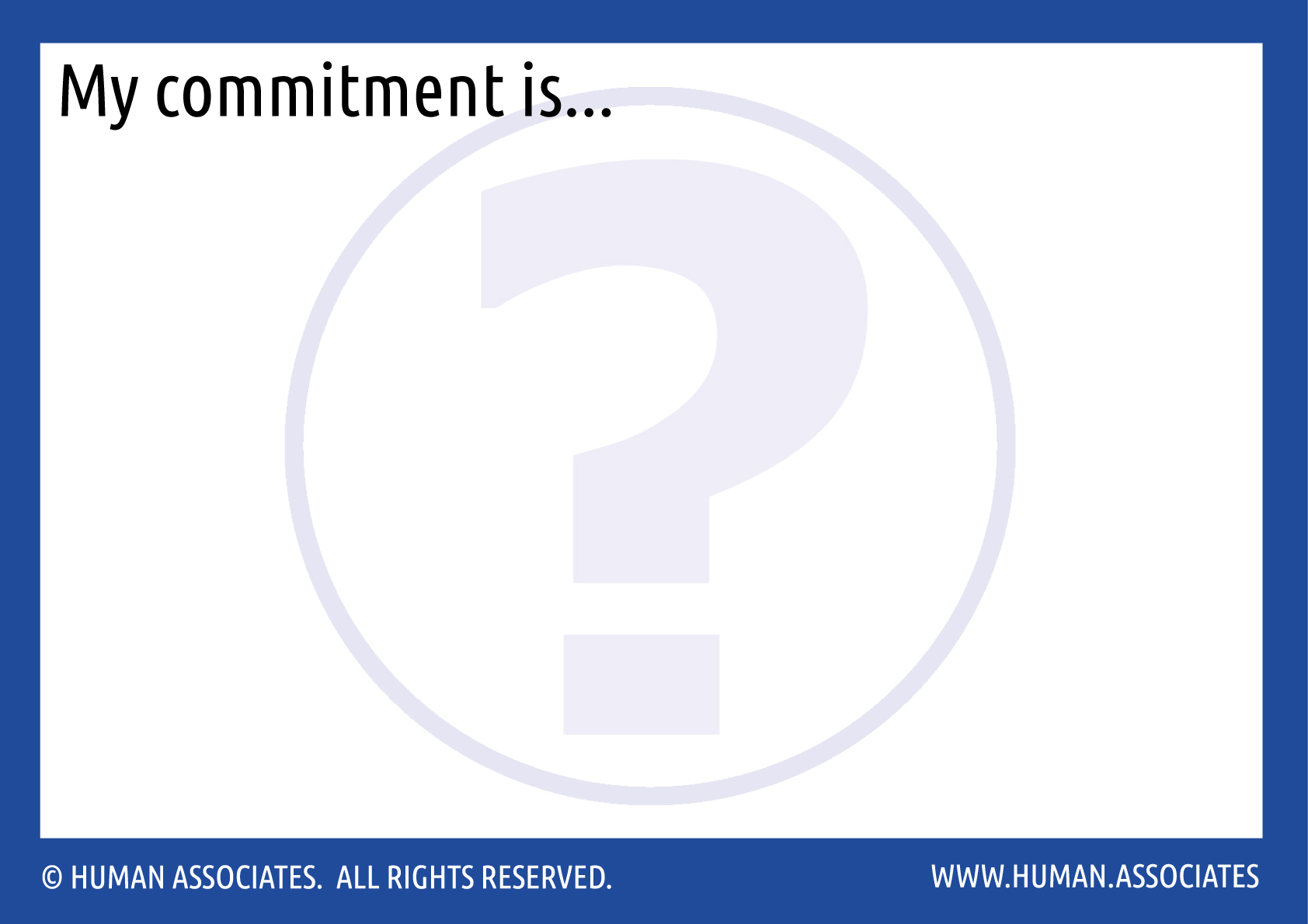 After writing down the choices, the user commits to action by completing the sentence ‘My commitment is…’ The user then commits to taking this chosen action within a specified timeframe.